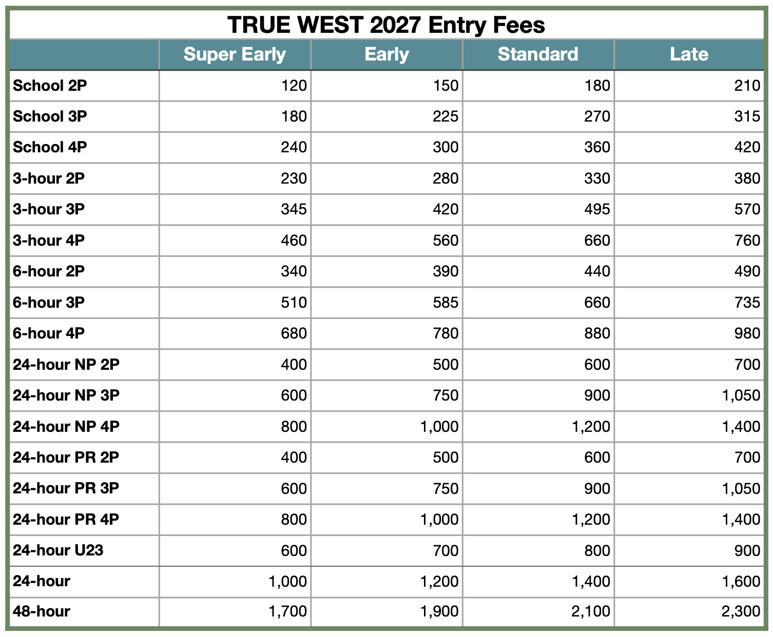 • Super Early Entry – May only • Early Entry – June to September • Standard Entry – October to January • Late Entry – February